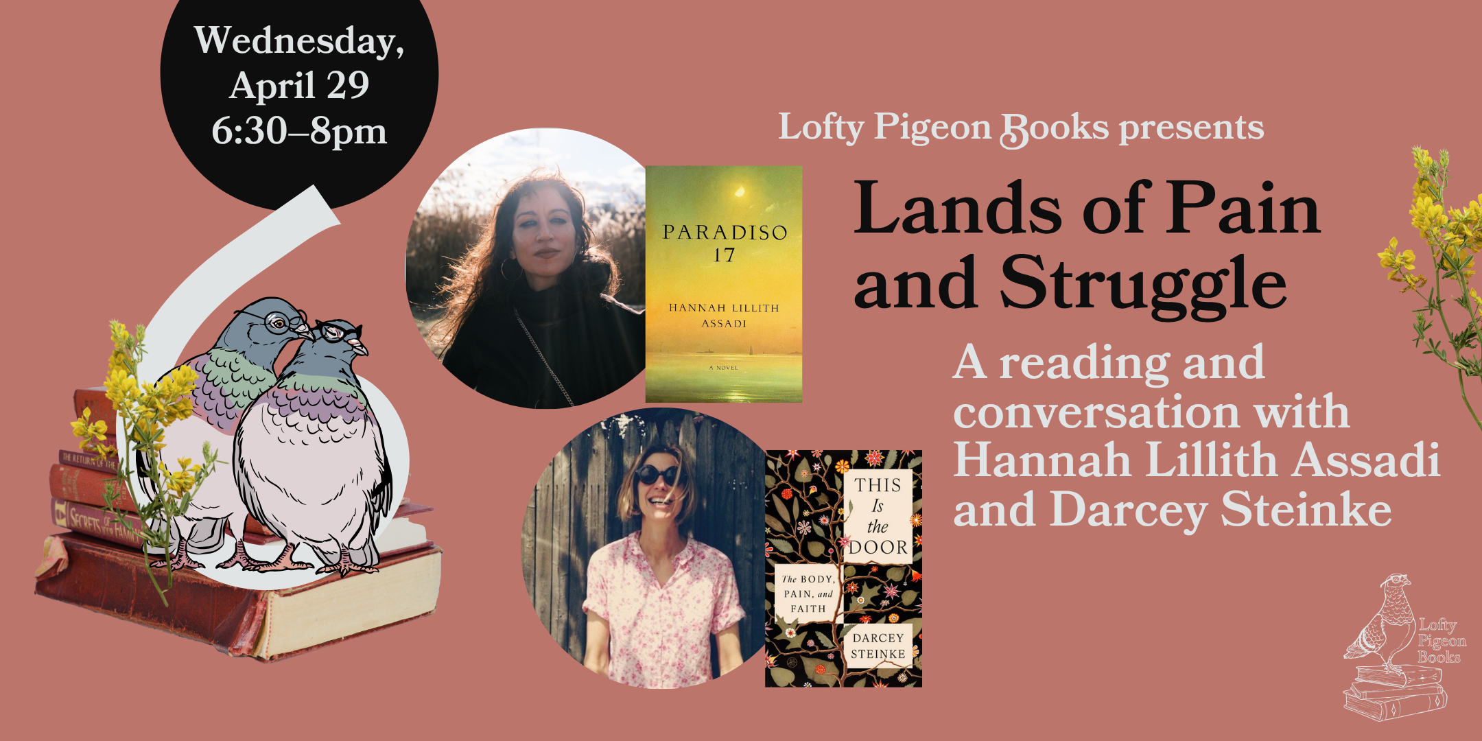 Lands of Pain and Struggle: A reading and conversation with Hannah Lillith Assadi and Darcey Steinke Wednesday, April 29, 2026 6:30 PM 8:00 PM Google Calendar ICS Lands of Pain and Struggle: A reading and conversation with Hannah Lillith Assadi and Darcey SteinkeWednesday, April 296:30–8pm More info