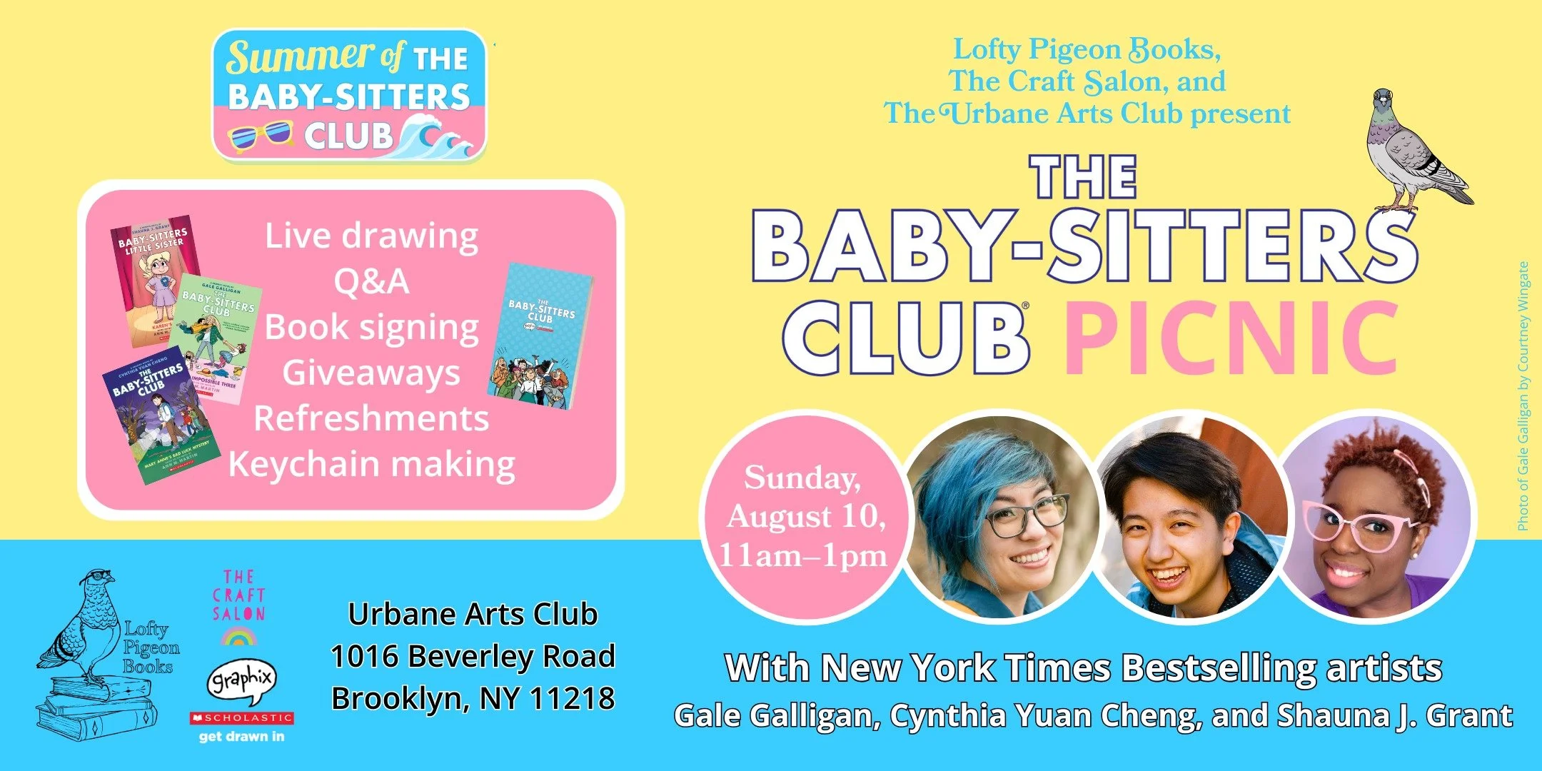 The Baby-Sitters Club Picnic with Gale Galligan, Cynthia Yuang Cheng, and Shauna J. Grant Sunday, August 10, 2025 11:00 AM 1:00 PM Google Calendar ICS The Baby-Sitters Club Picnic with Gale Galligan, Cynthia Yuan Cheng, and Shauna J. GrantSaturday, August 1011am–1pm More Info