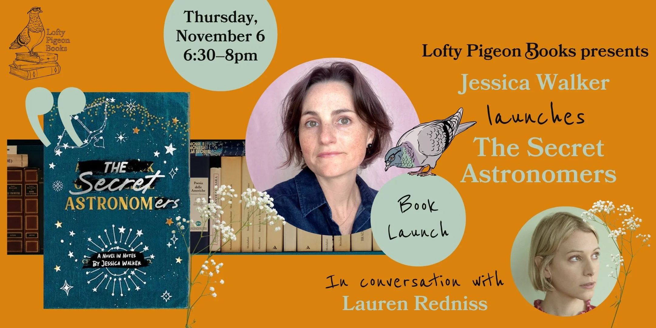 Jessica Walker launches “The Secret Astronomers,” in conversation with Lauren Redniss Thursday, November 6, 2025 6:30 PM 8:00 PM Google Calendar ICS Jessica Walker launches The Secret Astronomers, in conversation with Lauren RednissThursday, November 66:30–8pm More Info