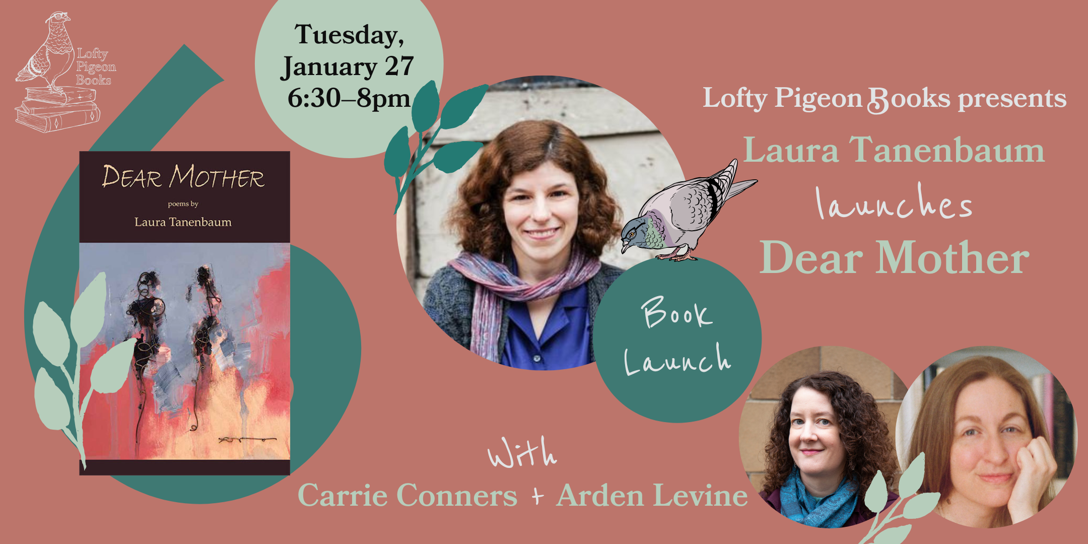 Laura Tanenbaum launches “Dear Mother,” with Carrie Conners and Arden Levine Tuesday, January 27, 2026 6:30 PM 8:00 PM Google Calendar ICS Laura Tanenbaum launches Dear Mother, with Carrie Conners and Arden LevineTuesday, January 276:30–8pm More info