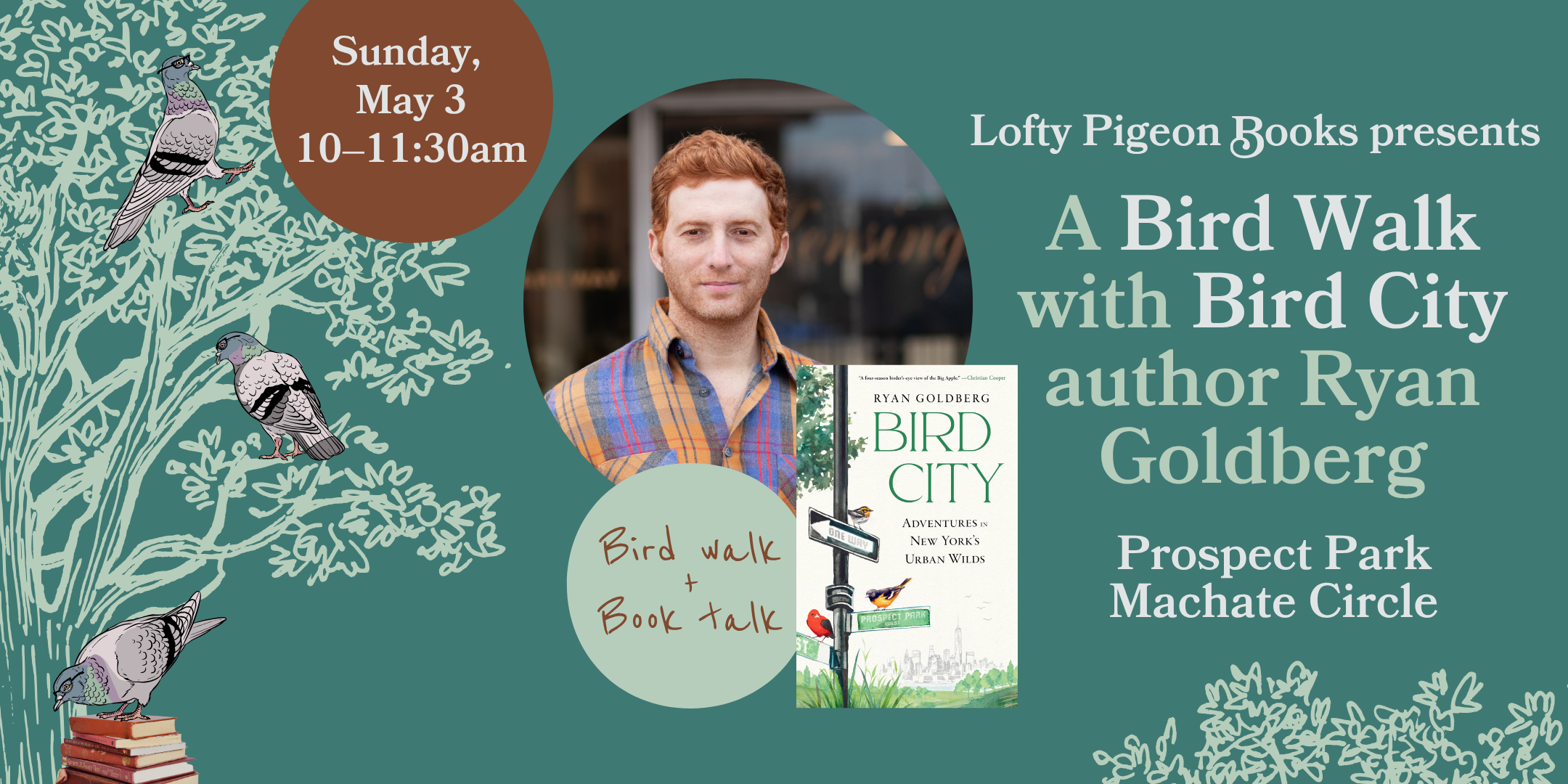 Back to All Events A Bird Walk with “Bird City” author Ryan Goldberg Sunday, May 3, 2026 10:00 AM 11:30 AM Google Calendar ICS A Bird Walk with Bird City author Ryan GoldbergSunday, May 310–11:30am More info