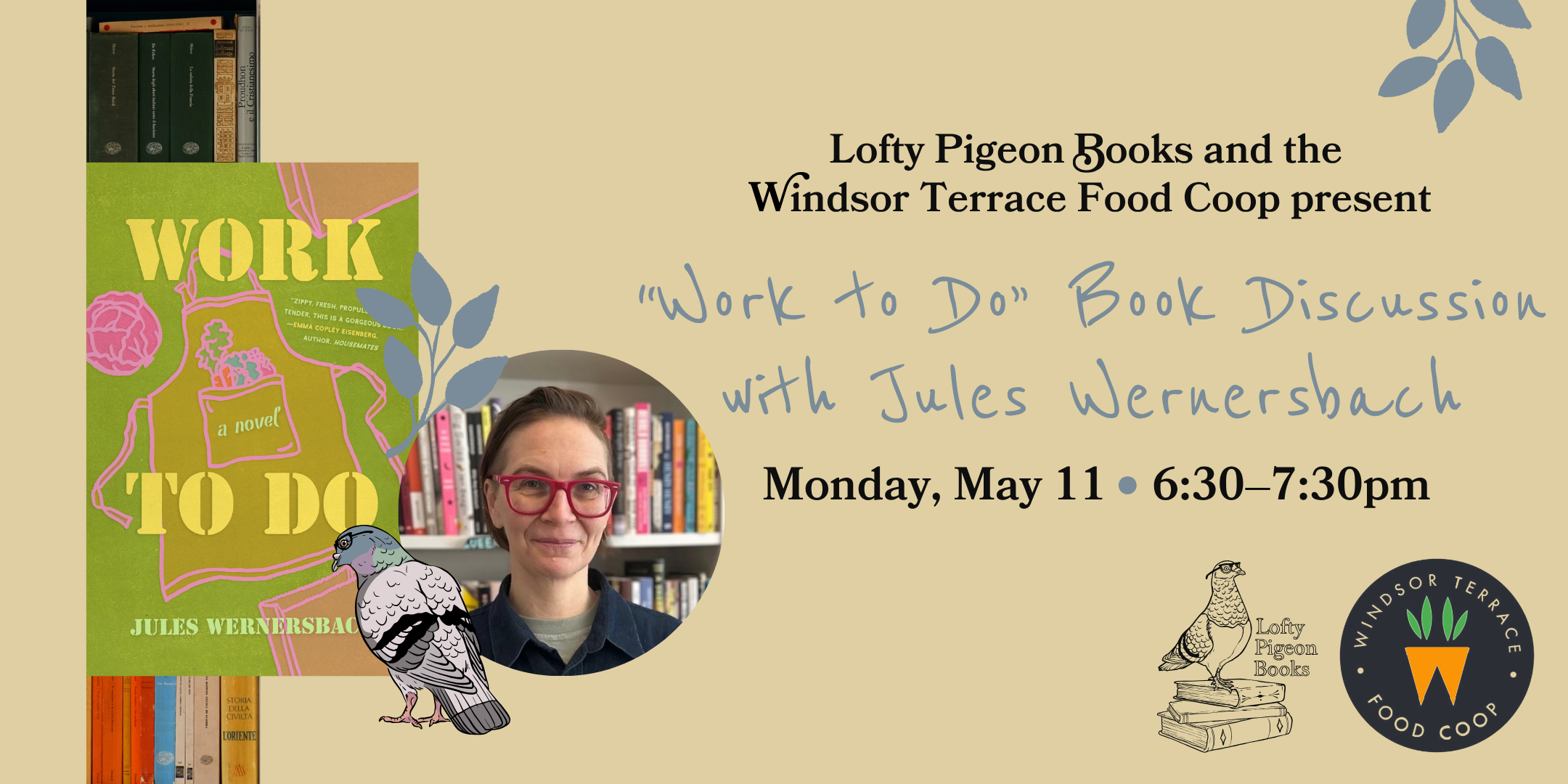 "Work to Do" Book Discussion with Jules Wernersbach Monday, May 11, 2026 6:30 PM 7:30 PM Google Calendar ICS Work to Do Book Discussion with Jules WernersbachMonday, May 116:30–7:30pm More info More info
